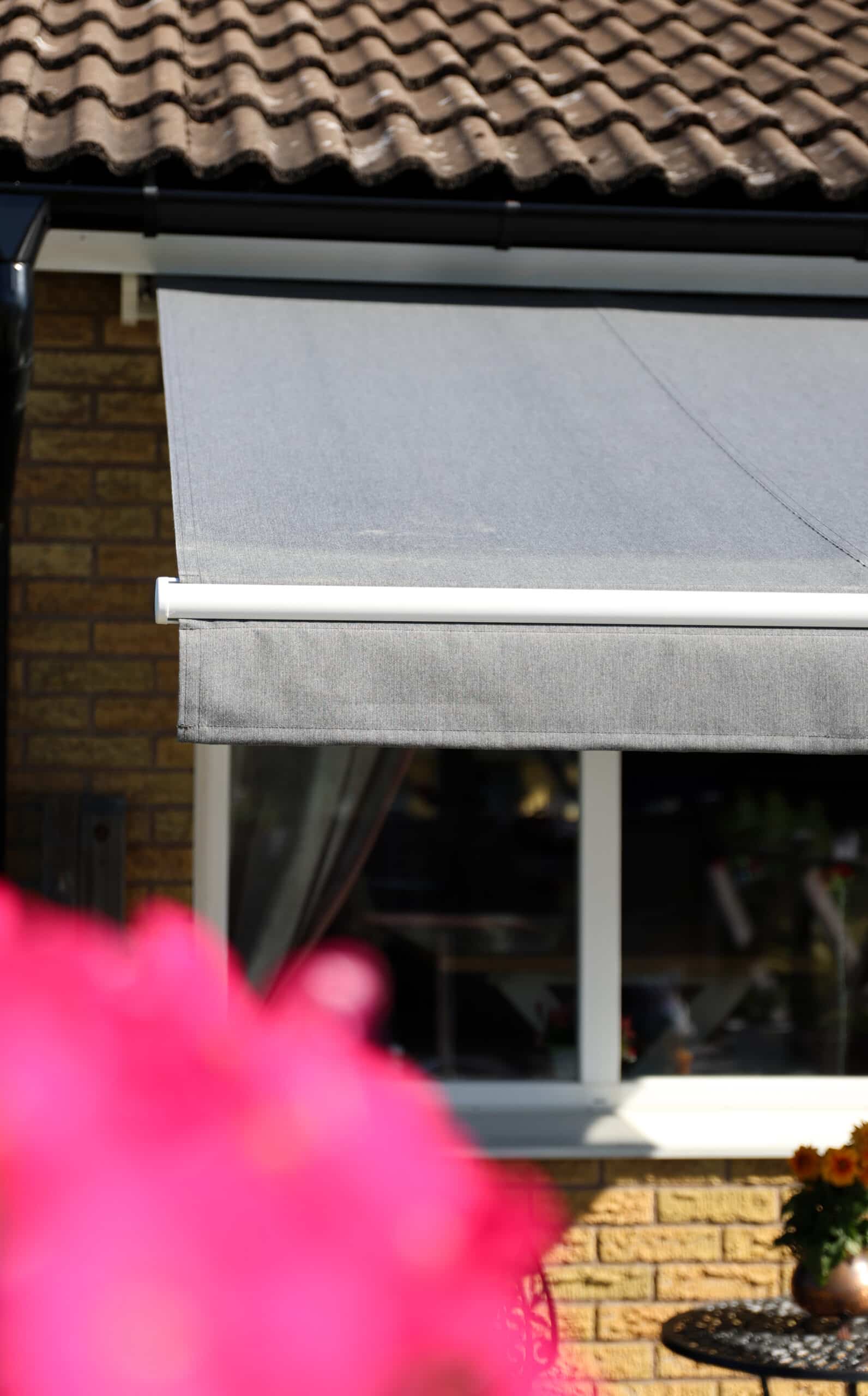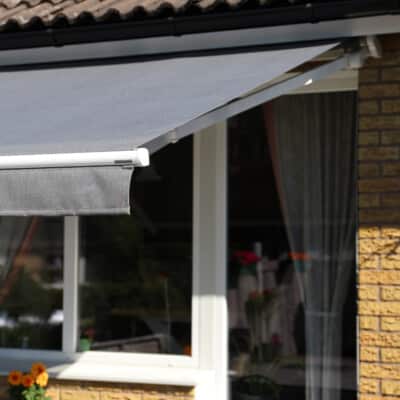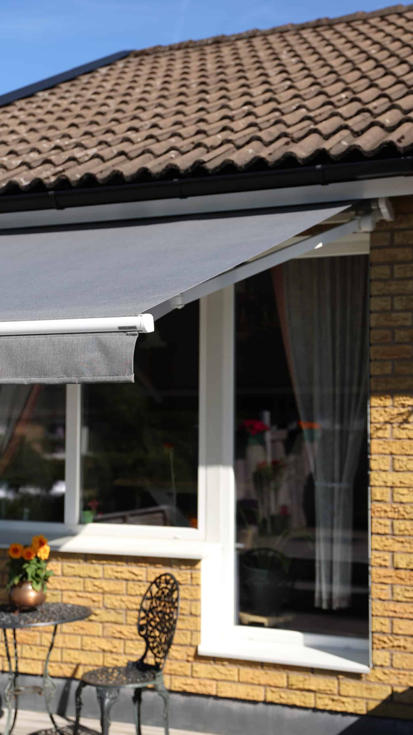 Hestra Ebbe är särskilt framtagen för balkonger och mindre uteplatser. Med sin nätta konstruktion ger den effektiv skugga utan att ta över fasaden och skapar en trivsam plats att vistas på under soliga dagar.